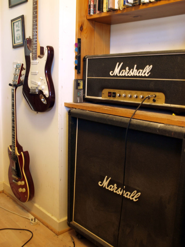 Can't be bothered digging my Les Paul out for a photo, here it is in happier times (95?) when it used to get played and I could keep a motorbike in the kitchen. That's not me btw.
