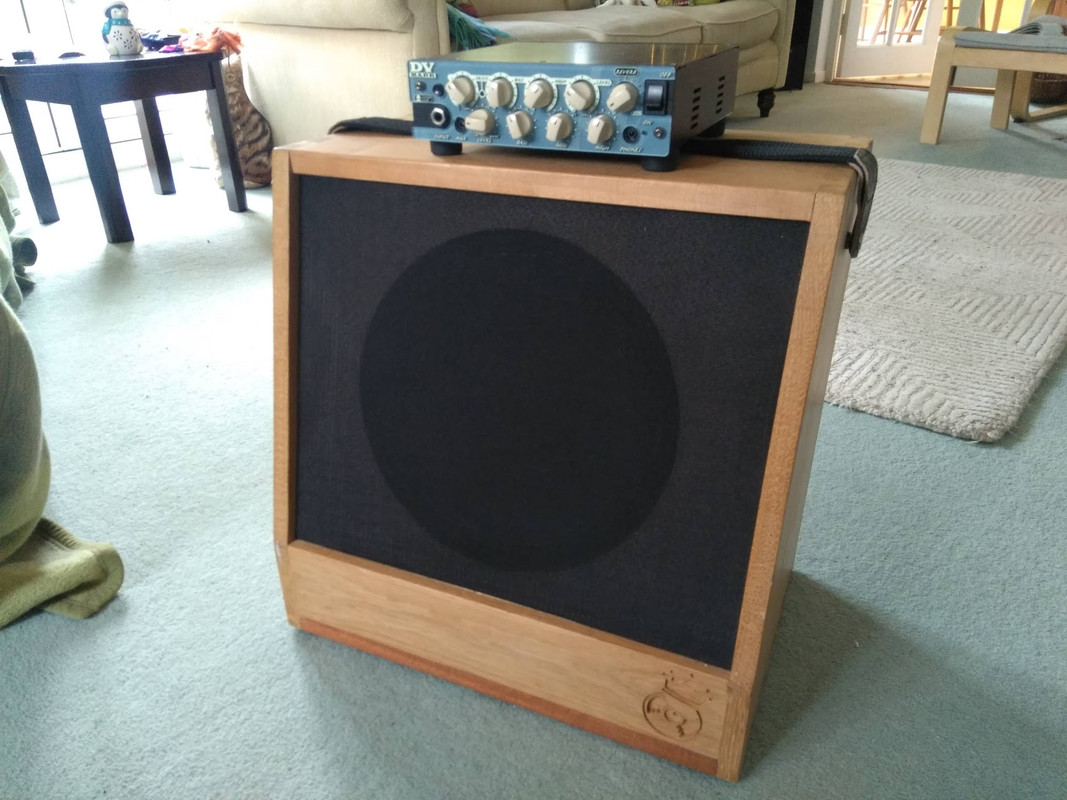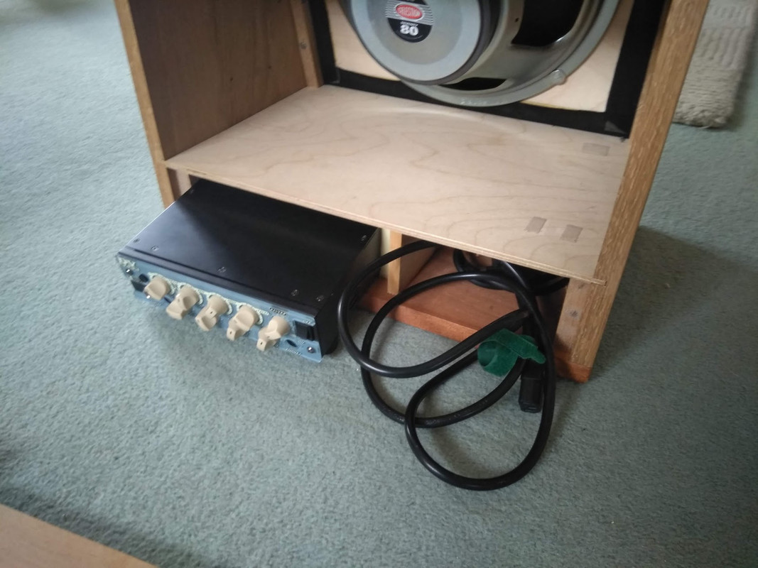 Celestion Seventy 80 speaker (though I do have a Vintage 30 I going to try in it), and built in storage for speaker cable/kettle lead and the DV Mark Micro 50 head.
