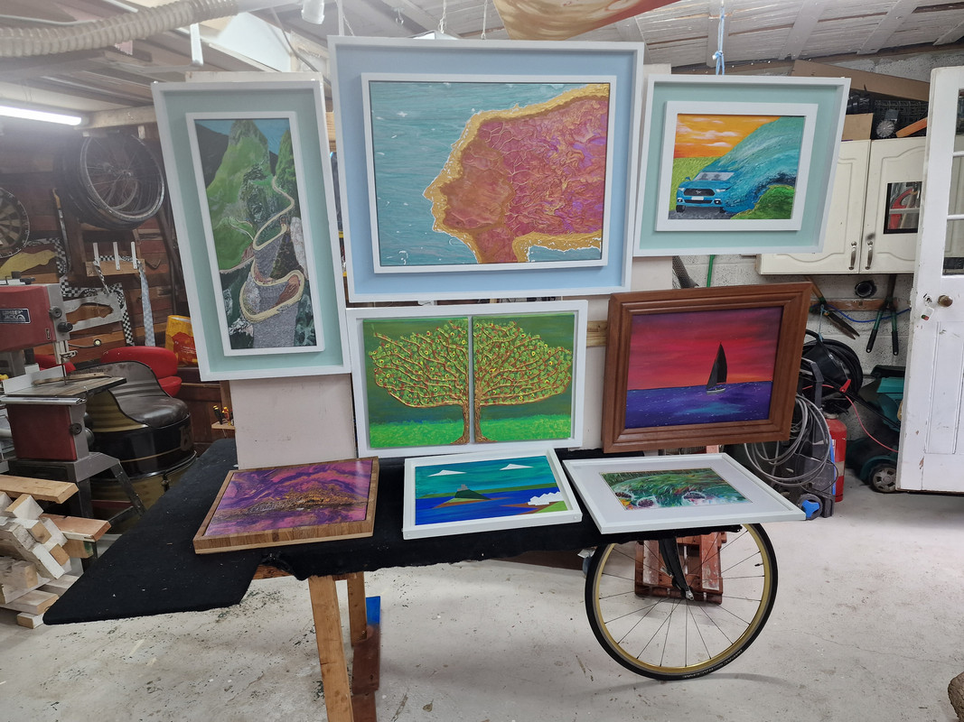You don't need to buy, or even talk about, my paintings but I would appreciate the company. It's my first year and I have no idea how many people will turn up or when so I am basically just sat waiting. If the weather is good I will probably be carving a wooden giraffe or painting. If the weather is bad I will probably be in the garage fiddling with the bikes and generally messing about.