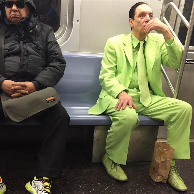 he looks like he's worn the same clothes every St Patrick's day since buying them new in about 1978.