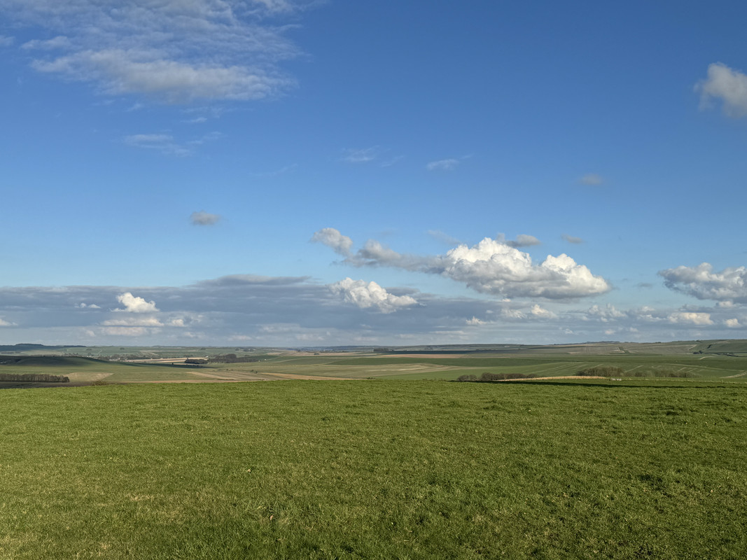 This is looking from close to the Wansdyke, near Furze Knoll, with West Woods on the skyline to the centre right, and Silbury Hill is roughly in the centre. Fantastic open skies, one of my favourite places.
