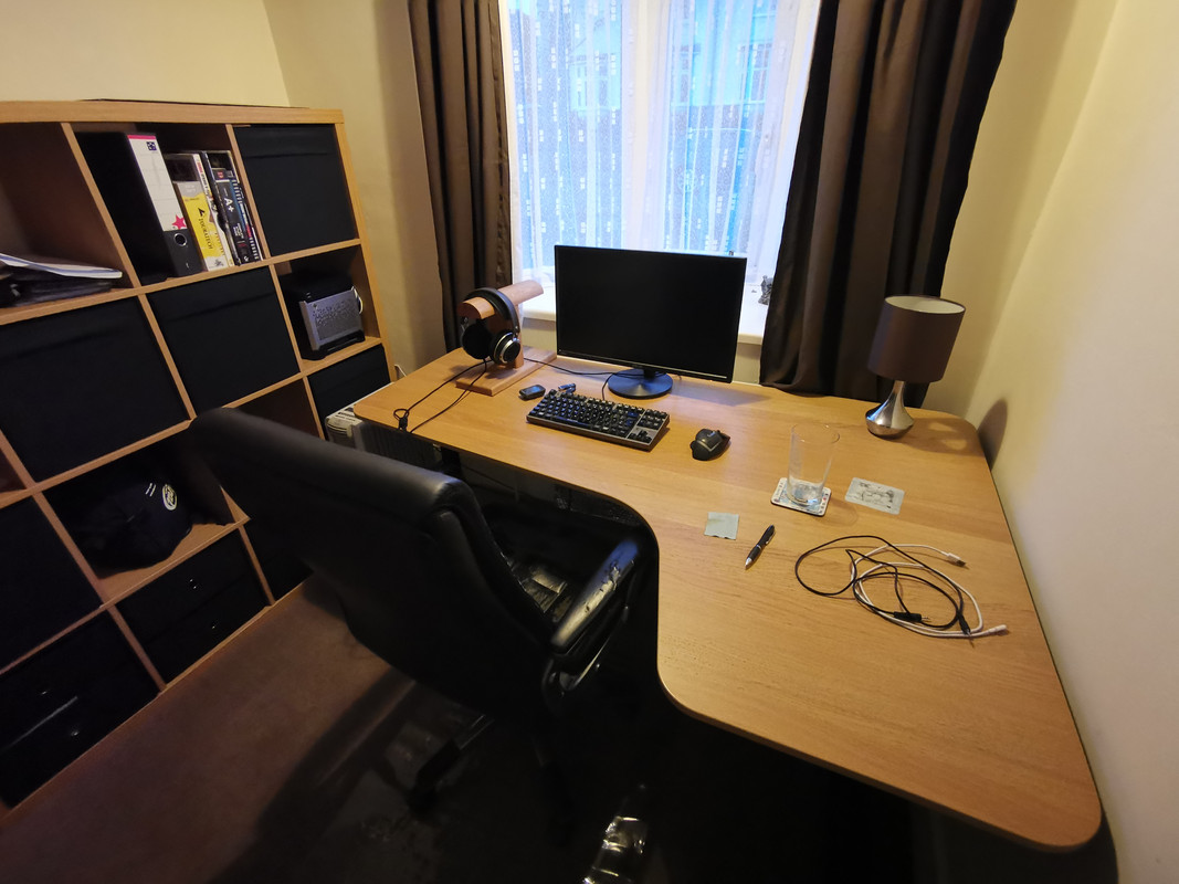 This is mine, I can shut the door and be left alone. As we're moving to split teams, one week wfh and one week in the office alternating, I'll be ordering a 34" UW monitor this week to go along with my 24" monitor. Working in IT, a single monitor just doesn't cut it!