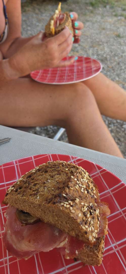 Still got enough bacon left to get us through the trip. Had to buy eggs and mushrooms but not managed to find any black pudding in Italy or France 😪