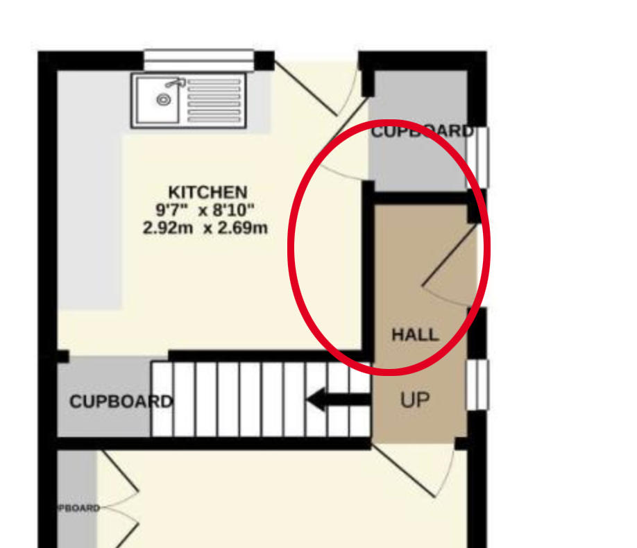 I think your floorplan is wrong. There seems to be a door missing from hall to kitchen, or have you got to go out the back door and into the side to get into the lounge!?