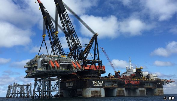 Its clever stuff how these enormous cranes can lift 14000 tonnes off a barge and then drop it into position, whilst both barge on which the topside is delivered and the crane vessel itself are both pitching and rolling on the sea