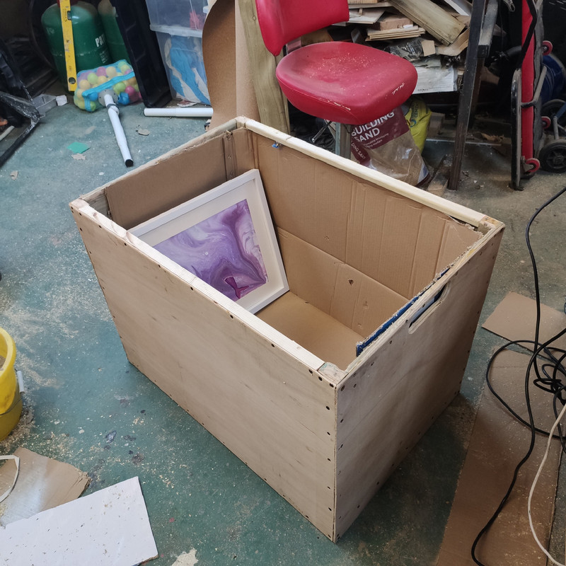 I needed a box to move my paintings around in and tried a plastic storage box from B&Q but it quickly cracked and was basically useless within 2 weeks so I decided to make one.