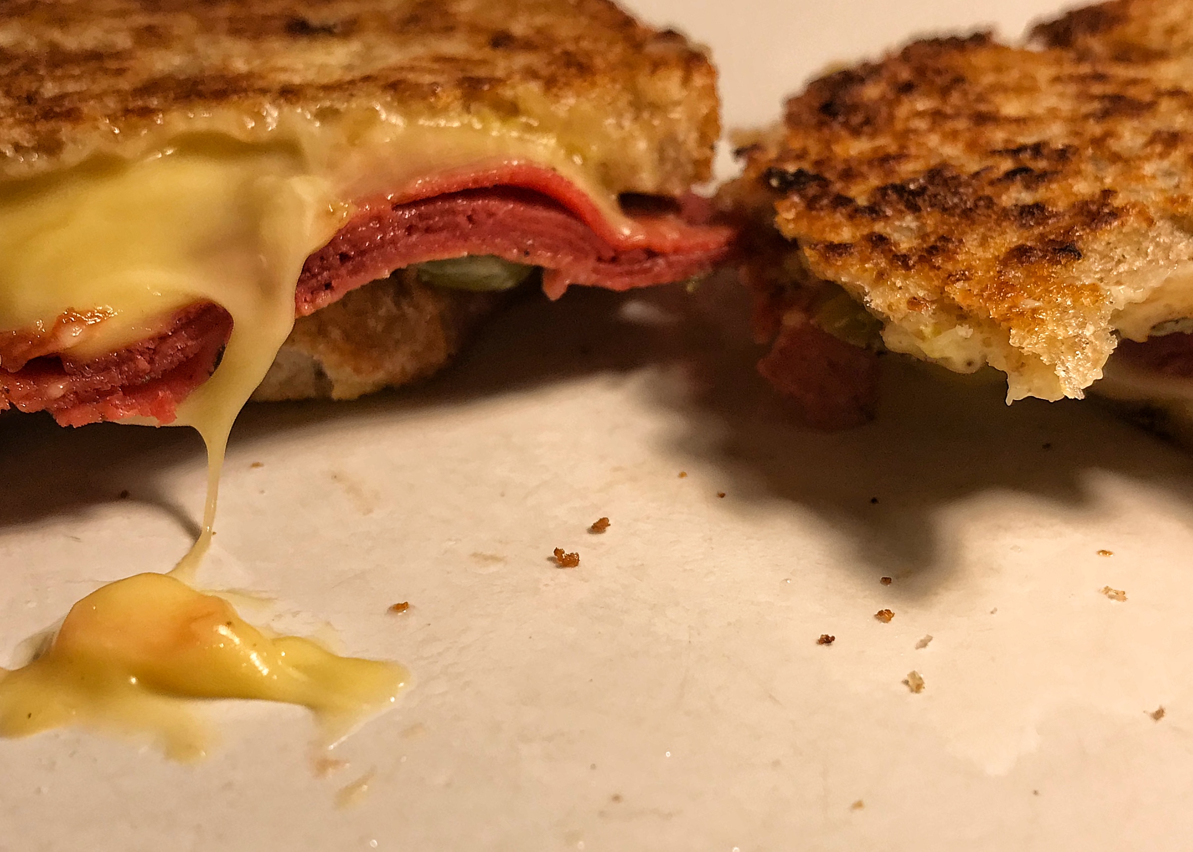 Finally made a nearly plant-based* Reuben toastie in the frying pan last week. The Gods smiled on us as I found some seitan (pastrami style) on offer, along with some vegan cheese. Had some pickles on the shelf and some sourdough in the freezer. Some vega mayo and mustard too. All the stars had aligned. It was ... ace. Really nice. Surprised me, as didn’t think I liked seitan.