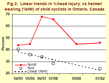 If helmets offered the level of protection that some folk claim then you would expect to see a decrease in head injuries when helmet wearing rates rise.
