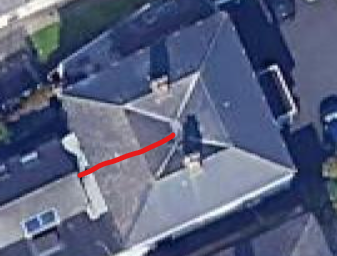 More pressingly, where the trough exits (at the pink), we have water staining in the ceiling underneath, so clearly water's leaking/ seeping. And there's not enough height in the attic at that spot to do owt or even reach the end of the trough to see what's going on.