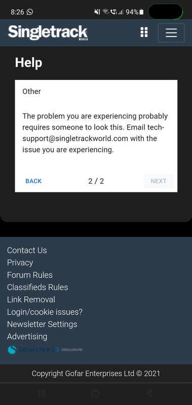@bruneep - that looks like a poorly formatted tech-support@singletrackworld.com, although that is also not the e-mail on the contact us page