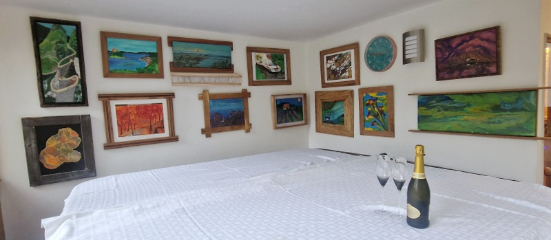 I am here all year, the gallery is at my house. It is actually the cabin with a table cloth over the hot tub. Ping me if you want a visit. There will be some food and drink I suspect and I might get the easel or angle grinder out for a bit of artistic entertainment, the General Hospital is only about 400m away. You will have to bike / drive to the other places unfortunately