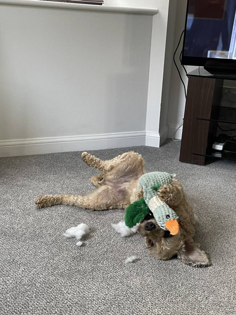 Luna. Two and a half year old miniature Labradoodle. Mad as a box of frogs but absolutely the best mate in the world.