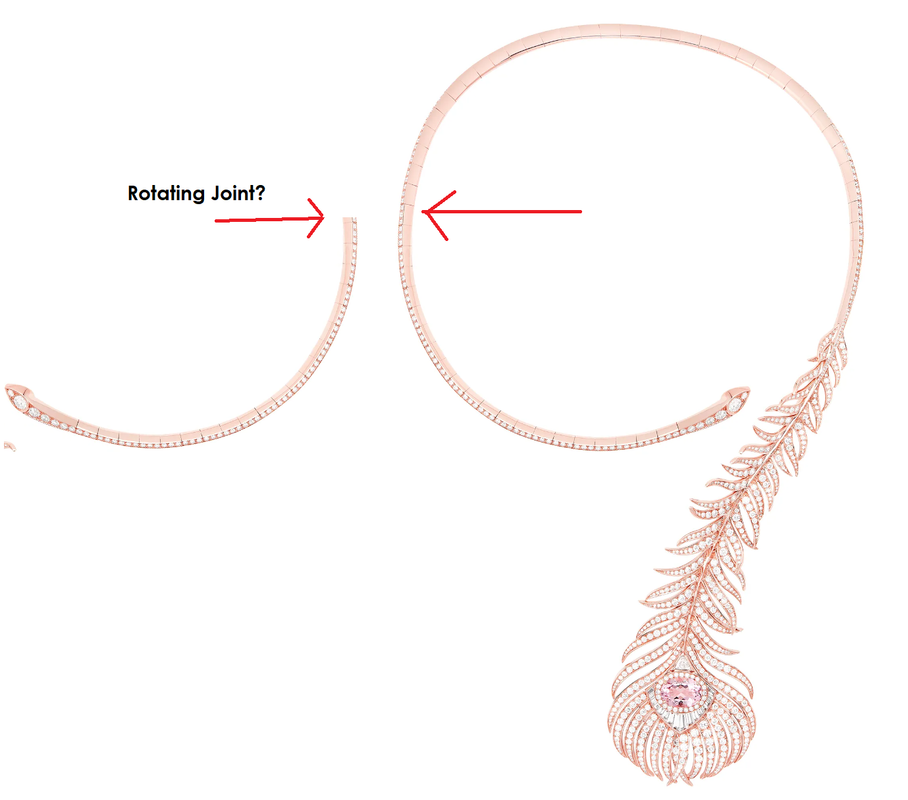 I probably will be using less gold and diamonds on my first attempt but am more interested in the physical mechanism to get the thing on and off the neck. Is it as simple as a single swivel/rotating piece on the side?