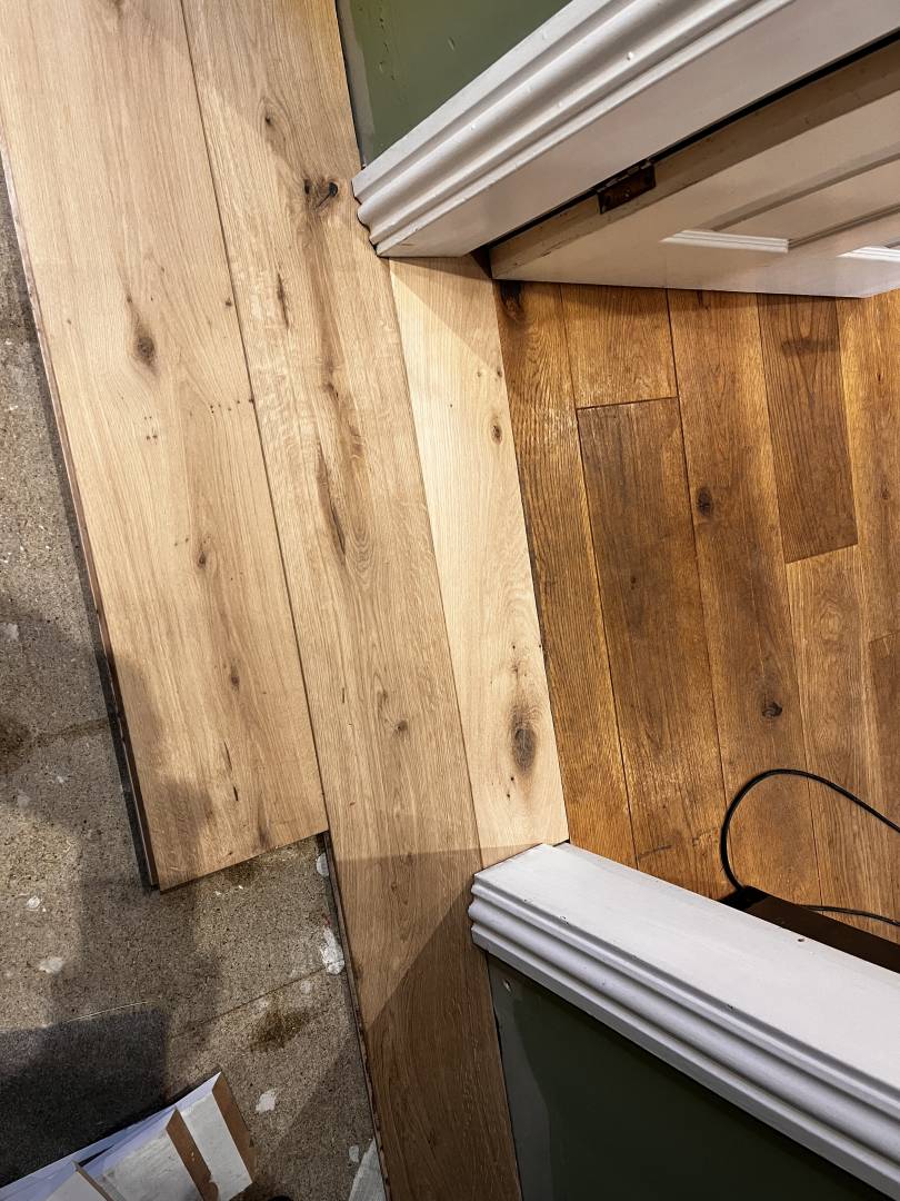 im now ready to put down the same in the hallway. instead of using a threshold strip id like to attempt to join onto the existing to get a continuous floor. Im aware this might not work buy my logic is if the joint fails, I can route out a channel and put a threshold in in the future and im no worse off for trying