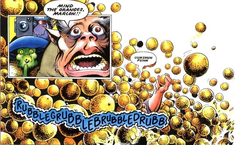 Puts fruit back in lunch box, picks up crisps. Phew, close call!