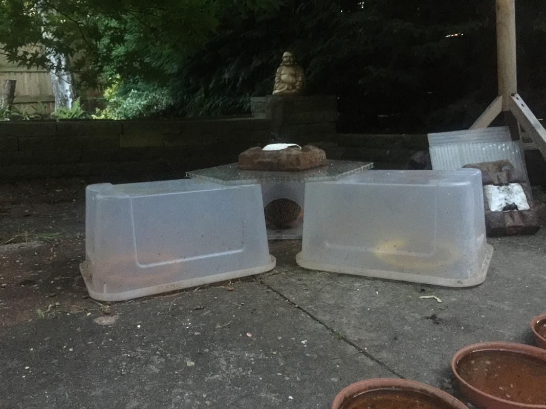 I’ve actually got a hedgehog feeding station a bit like footflaps has, except mine has three boxes set up with the entrances facing one another, and a cover over the centre, and a gap between just big enough for hedgehogs to squeeze through, and a bloody cat still squeezed inside! I’ve had to add an extra piece in each entrance to reduce the gap height, which has done the trick now. A lot of phaffing around though.