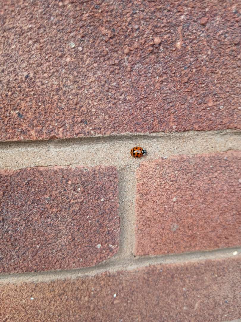 Its a warm October day around here (E Shrops), about 20°C or more in the sun, and we're getting a lot of ladybirds all about. They were crawling on the cream coloured walls of a couple of buildings in Bridgnorth earlier, and loads on the front of the house in Shifnal now. Mostly like this 'un; I counted 18, maybe 19 spots on this example, and the others look similar. A quick check suggests they're probably one variation of Harlequin Ladybirds