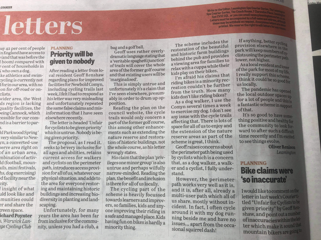 There's some good looking plans to get some cycles trails on the old Newbold Comyn Golf course, fair few objections - lets get some support rolling in.