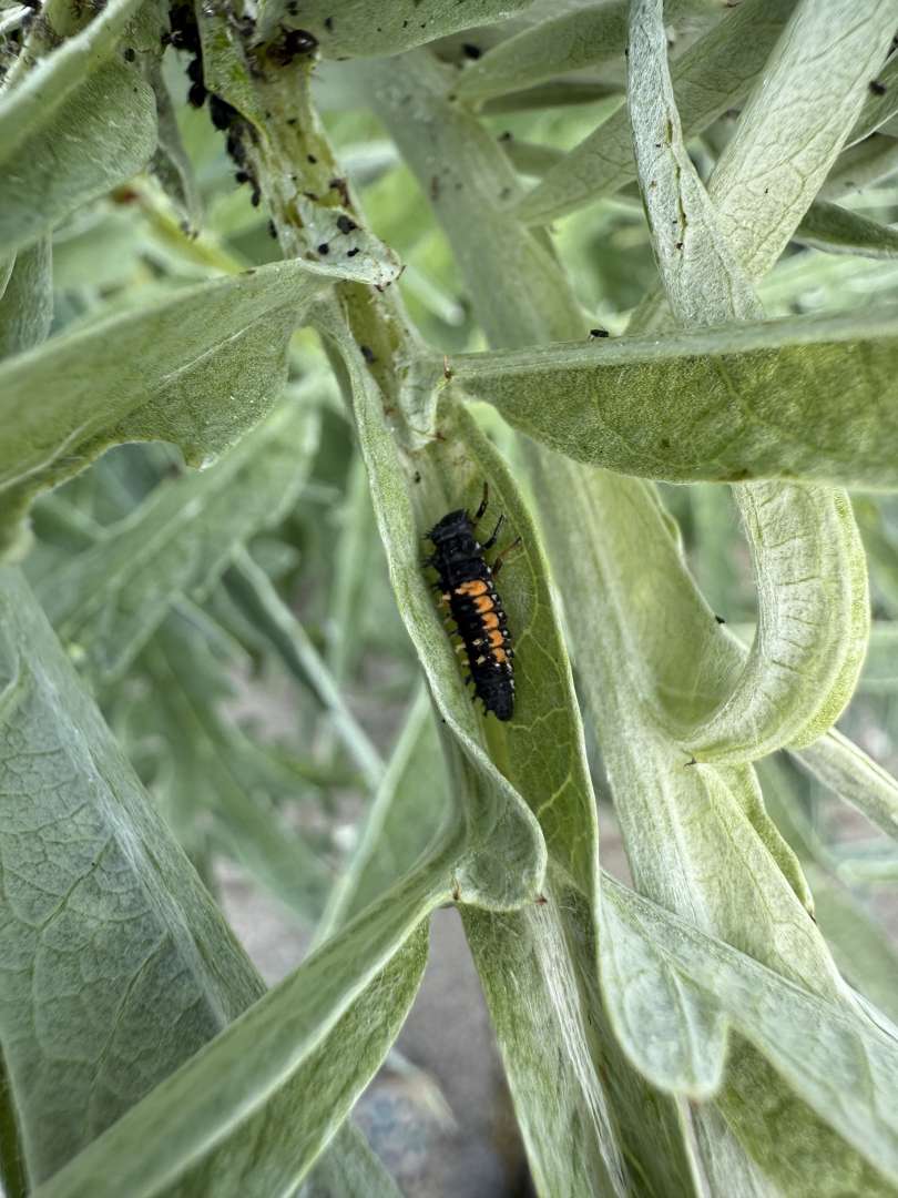 Lots of blackfly on the Cardoon (over 8’ tall) again this year but we’ve left them and the ladybirds have been very active eating the flies and also they’ve laid lots of eggs so in a week or so we should see the larvae fighting off the ants and eating the flies!