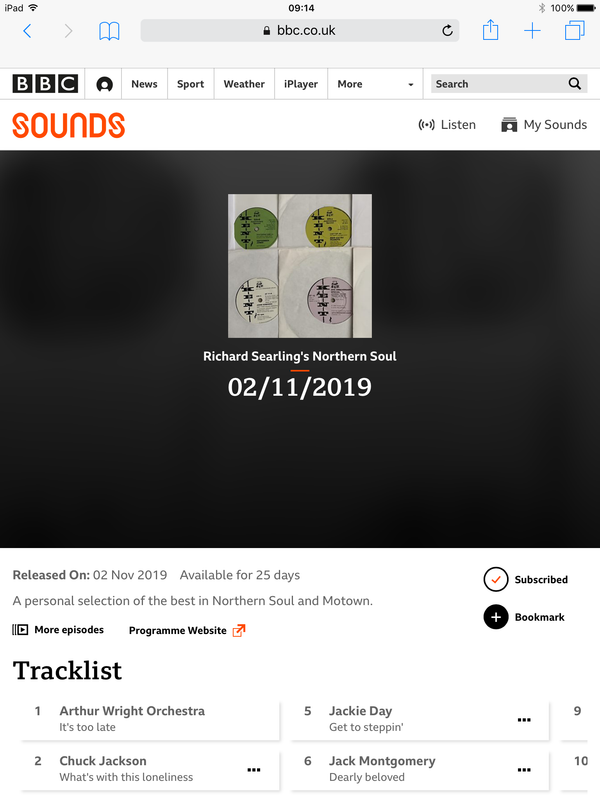 There's a playlist on Spotify called "Richard Searling's Northern Soul" if you have it.