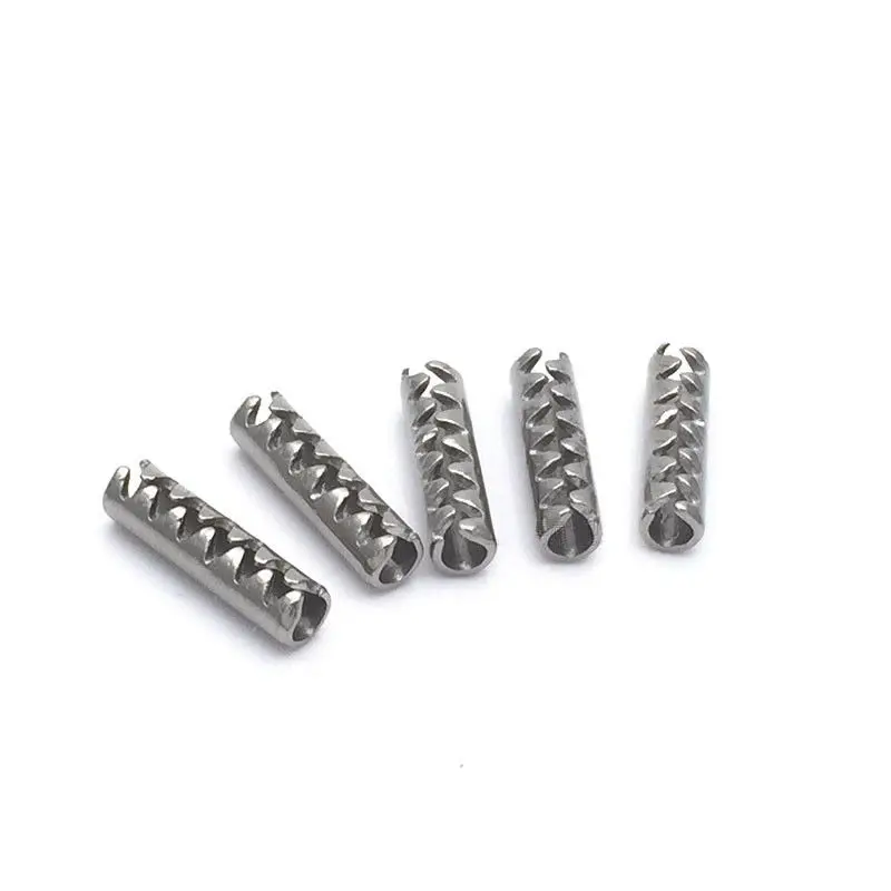 It's a slotted spring pin, but it has the extras on the slot, that'll engage when the pin is pressed into the hole.