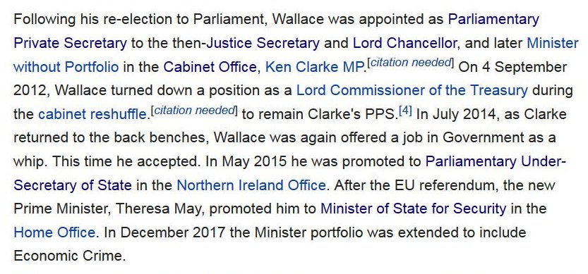 Now on top of that, Ken Clarke's long time PPS, Ben Wallace is now Minister of State for Security... and since December 2017, Economic Crime...