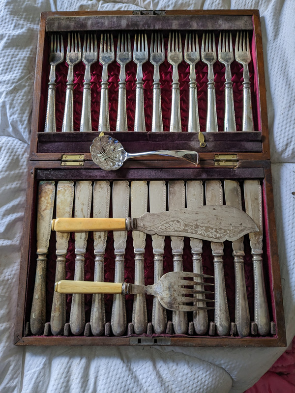 The only "echt" silver cutlery I have is a spoon and fork which were gifts from Germany when I was born (it was a tradition to send "grown-up" cutlery for when it's needed). It doesn't get used, just gets the occasional wipe with the silver polishing cloth when I'm doing the keywork on my oboe.