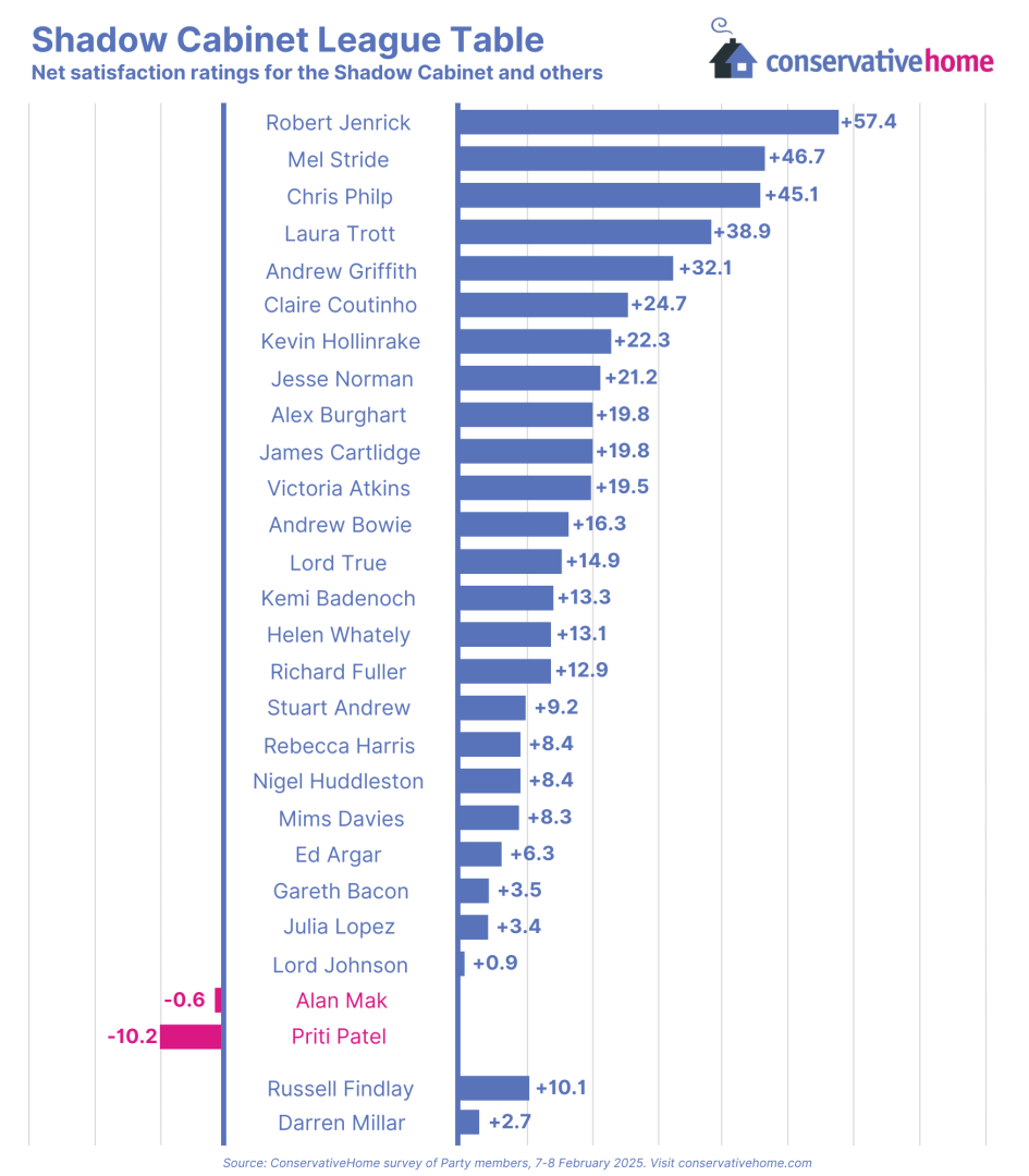 With Farages stale breath down her neck, I suspect her bonkers statements will only get worse, the only thing keeping her safe is the absolutely dire state of the alternatives... Honest Bob Jenrick is the most preferred, hilariously Chris Philp is in 3rd