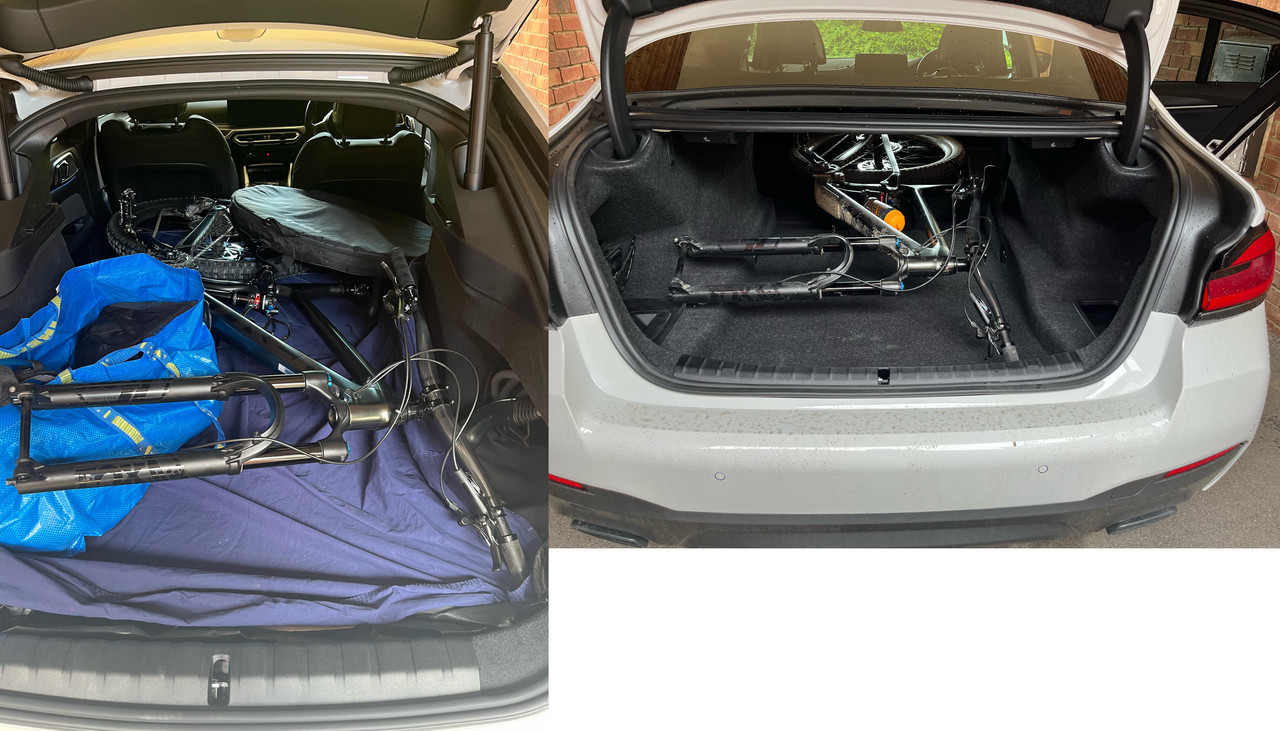 Large Privateer 141 in a Volvo C30, bit of a faff due to the stupidly small boot opening, Glad I've usually got the van for bike duties!