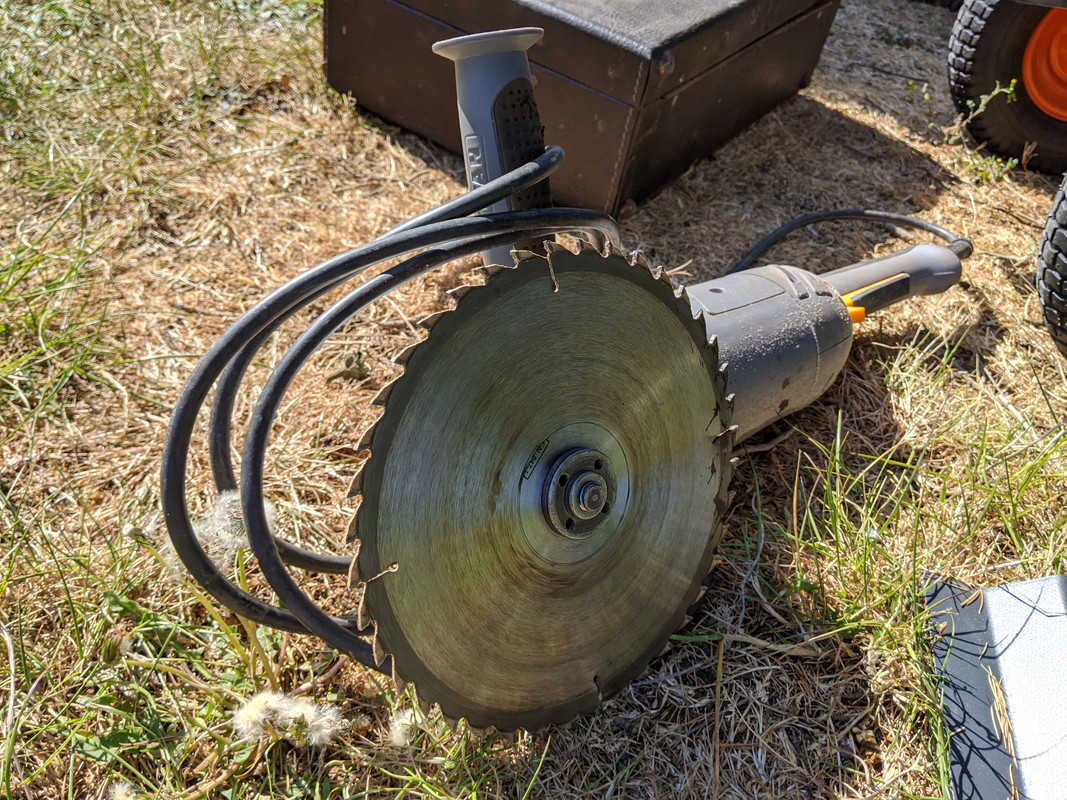 Talking of stump/root removal, I'm working for a bloke at the moment who decided to diy it by fitting a chop saw blade onto a 9" grinder. Removed the guard too obvs 😳