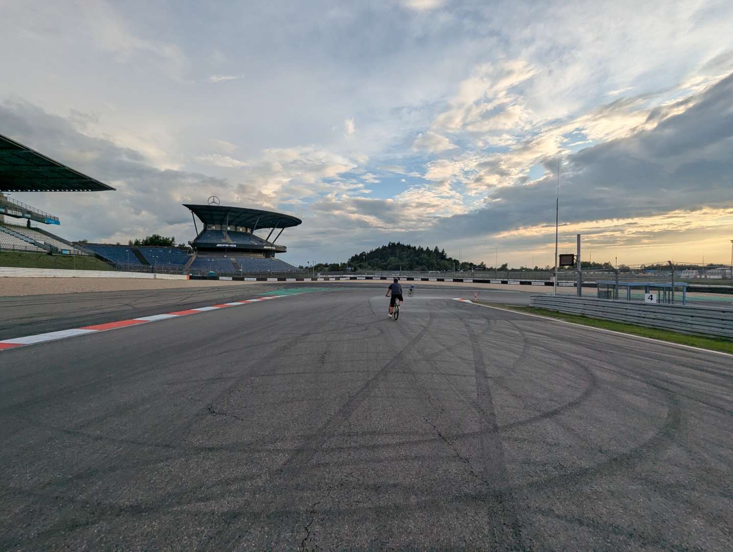 Then on Thursday (after waking up hungover!) me and the OH took our bikes on the (frankly quite lovely) gravel track that weaves along the side of the racetrack, taking you to some AMAZING vantage points to watch the TF or whatever is going on on the track that day. All in, a lovely 24km loop.