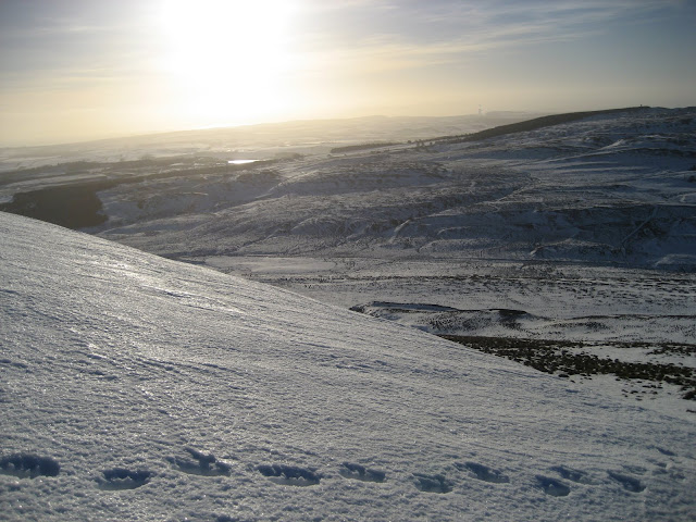 I left early to catch the frost, the snow was hard enough to walk upon. I met a guy putting crampons just below the last climb up to the summit. I thought, thats a bit over the top. I contoured around the North (frozen) side, I'd say crampons would have been well worthwhile!