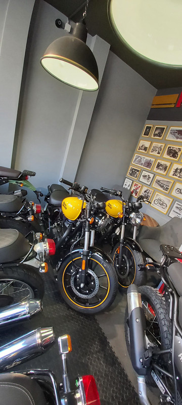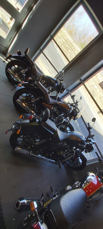 The yellow ones in the pic are the basic Meteor 350 like the OP's. There was a red one in the workshop which was very nice close up. That's definitely the one I'd buy as I much prefer the satin black hardware to the chrome on the more expensive models.