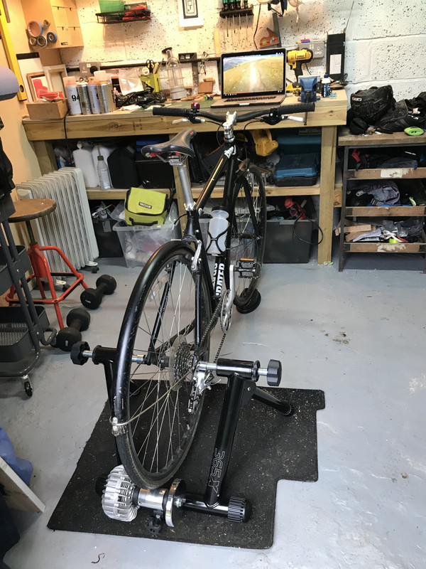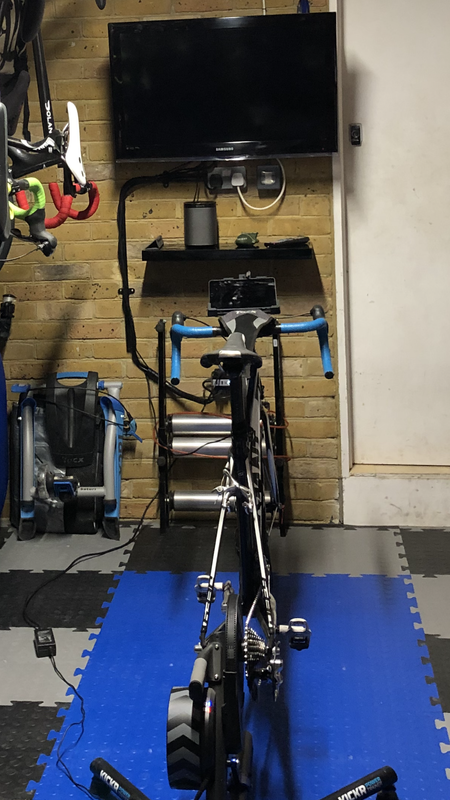 And I have a checkered black/grey floor with a 2z8 patch in wahoo blue on which the kickr sits. I know. Had to be done.