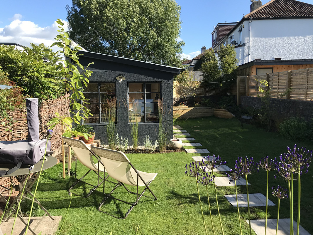 After 12 months of failed attempts at making it water tight, frankly knocking the thing down and replacing it with some kind of wooden 'cabin' thing. Half workshop, half home office.