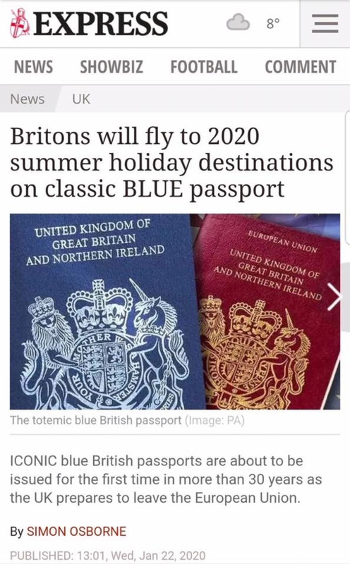 There was some slightly meek info from the Passport office this week, if you apply now, as in before the end of the month you'll get red. If you apply in Feb you might get red and might get bleu and soon after it's bleu until we rejoin the EU.