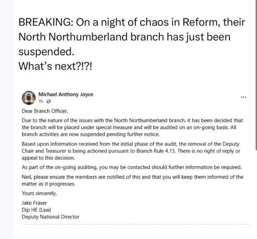 Think it's fair to say Reform put a line in the sand with the MPs comments and the Chairman's departure. Its gone down well with the faithful to say the least.