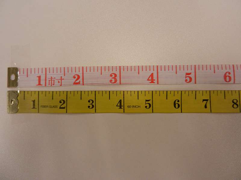 a tape measure from a cheap sewing kit in the man drawer, and the inches were Chinese inches!