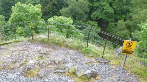 Wet grass is slippy. FFS. Glad the girl is OK, but it's damned obvious there is a waterfall there.