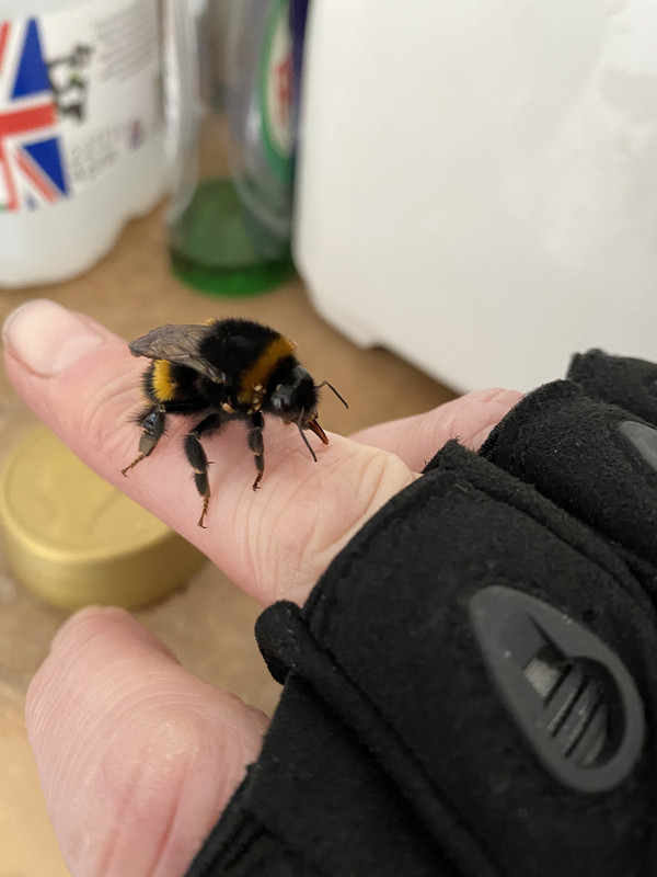 Checking the locations of the cars in our off-site storage for a stocktake this afternoon I spotted it on the ground by a car. I thought it was dead, but when I touched it it raised its legs, so I coaxed it onto my hand and took it to the security cabin, and mixed up some warm water and sugar. It wouldn’t drink from a puddle on a jar top, but i dripped some onto my finger and it was happily drinking that.