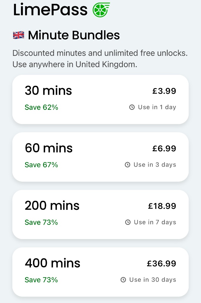 Santander Cycles (not electric/have to dock at physical stops) are super cheap - £3.50 for a day pass of unlimited trips up to 60minutes.