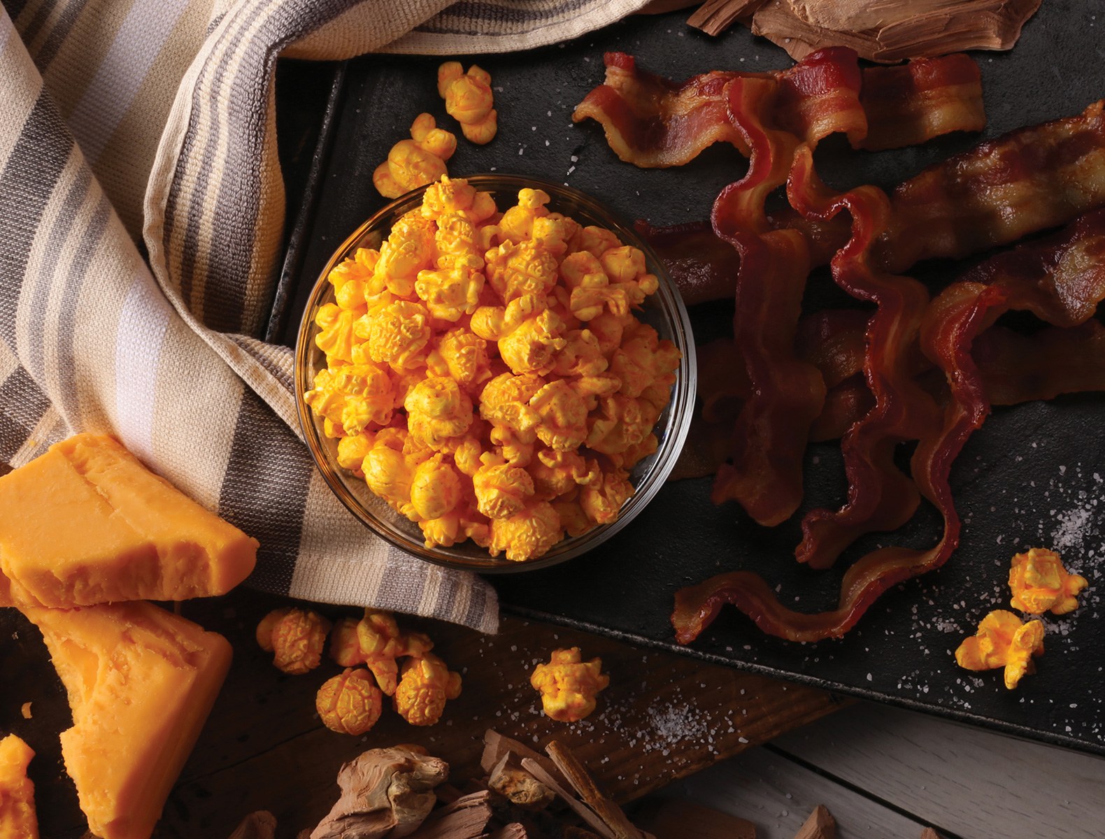"Our new, all-natural recipe is crafted with real cheddar and the taste of juicy bacon, slow-smoked over hickory wood to bring out its hearty flavor. Pack your plate with our deliciously cheesy bacon popcorn. This smoky masterpiece is available for a limited time only!"