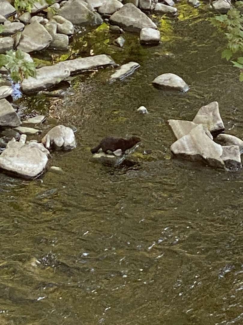 A mink swims higher in the water you will see its back. Like a loch ness monster.