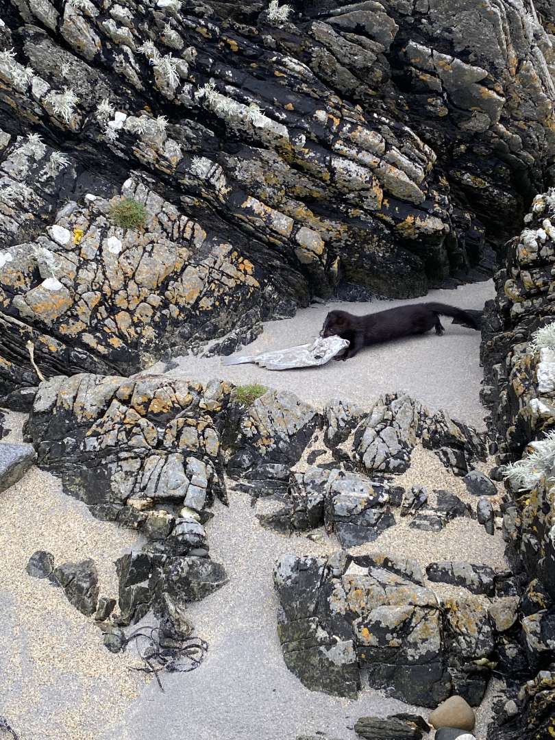 There are quite a few mink here on Mull, escapees from fur farms and a real threat to ground nesting birds. We had an encounter with one at Ardalanish where it had found a large dead flatfish and was endeavouring to drag it back to its den. I was able to get within a few feet- it was really feisty. Fortunately the dogs weren’t that interested. Reported it to the authorities who will trap and exterminate them.