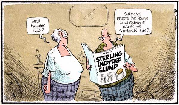 When BT announced there would be no Currency Union, it would have been obvious to Salmond what could happen to the £, and the pressure it could subsequently put on the BT side. This has come to pass. It could certainly explain why he has stuck to his guns about it when most Yes supporters would prefer our own currency.