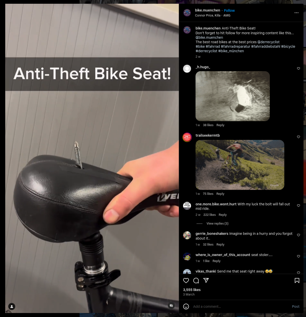 It's a (dangerously) modified suspension seatpost. The reel ended with the legend "send this to a friend who needs it".