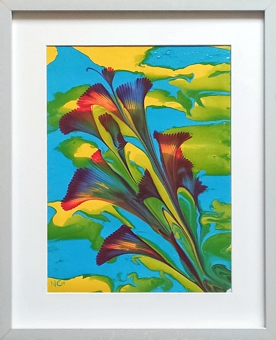 All the photos used were shot with the painting on the floor with a sheet of white paper next to them just using my camera phone. Snapseed to White Balance and then crop to close to canvas size and get rid of the paper. Perspective freehand then lets me drag the corner of the canvas or frame to the corner of the digital picture. Export and put on the website.