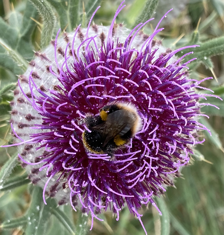 I love watching bumblebees burrowing into thistle flowers, difficult to get a symmetrical photo usually, but this one’s close-ish.