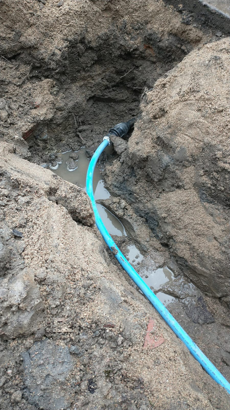 Will leave it open for a bit to be sure it's not leaking then bed the pipe and joint in sand and backfill.