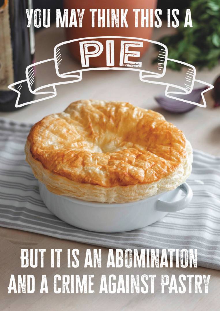 Now then. I am all for pie, sweet, savoury fully encased, top only (but never a square of seperatefly baked puff bslanced on top).